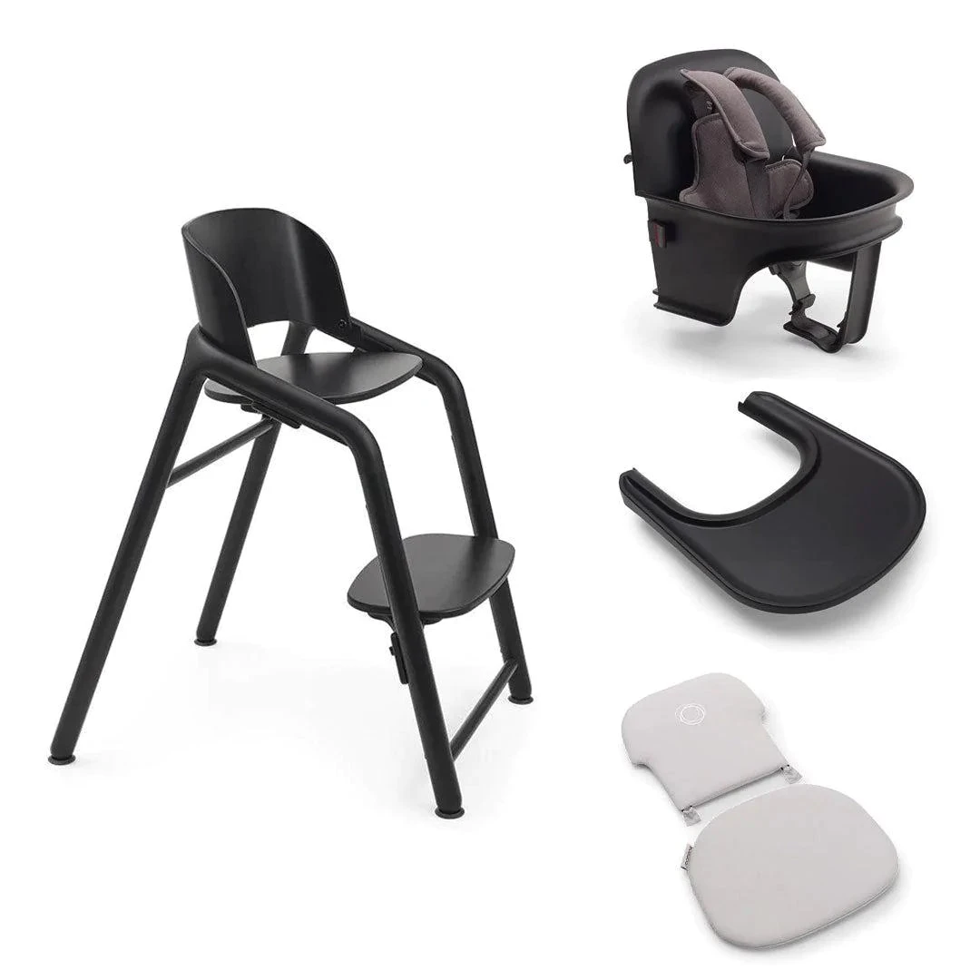 The Bugaboo Giraffe Highchair + Complete Baby Set in Black/Black is the perfect companion for mealtimes. including the highchair, baby set, tray and baby pillow set.