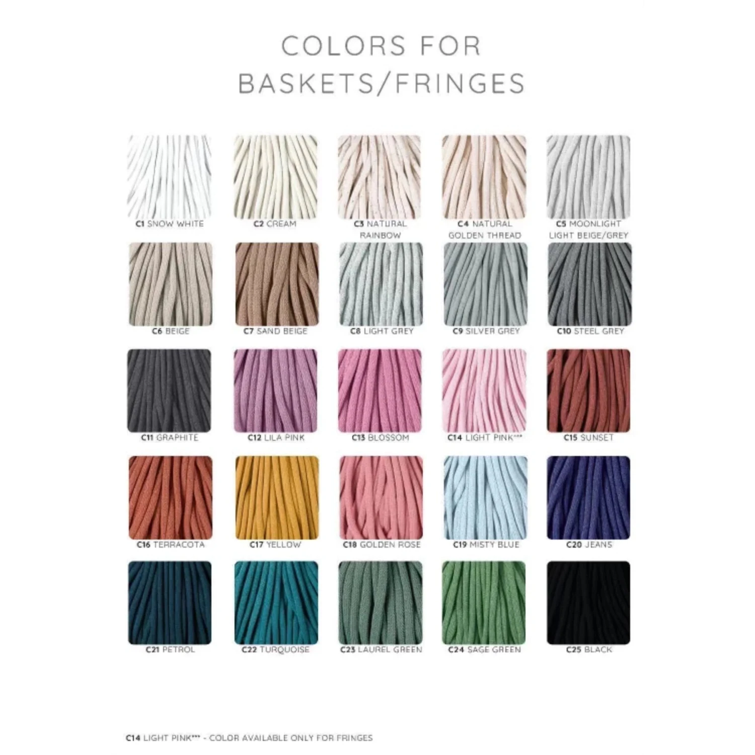The raw materials used (cotton ropes) are certified by OekoTex Standard 100, which testifies to the absence of harmful substances used in the production and dyeing of cotton.