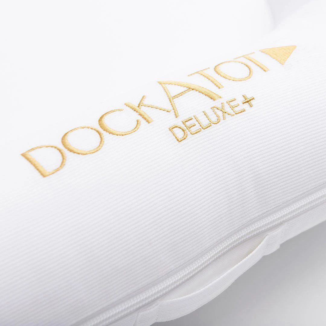 The DockATot Deluxe+ Cover in Pristine White print easily fits over the DockATot Deluxe+ Dock and is a great way to personalise your dock with your room décor, mood or style.