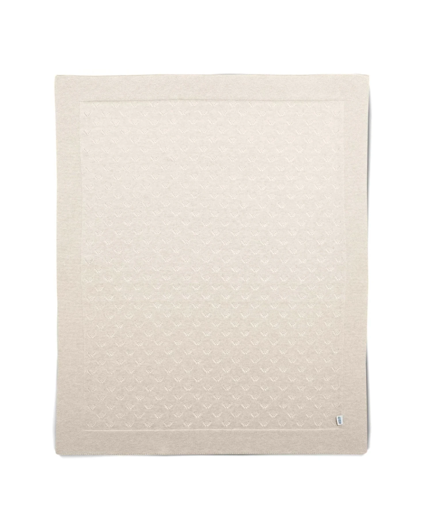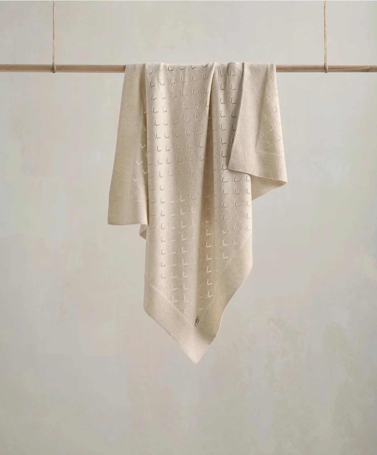 With its delicate pointelle pattern, classic knitted texture and warm dusky pink shade this soft blanket adds rich texture to baby’s nursery while making naps and snuggles extra cosy.