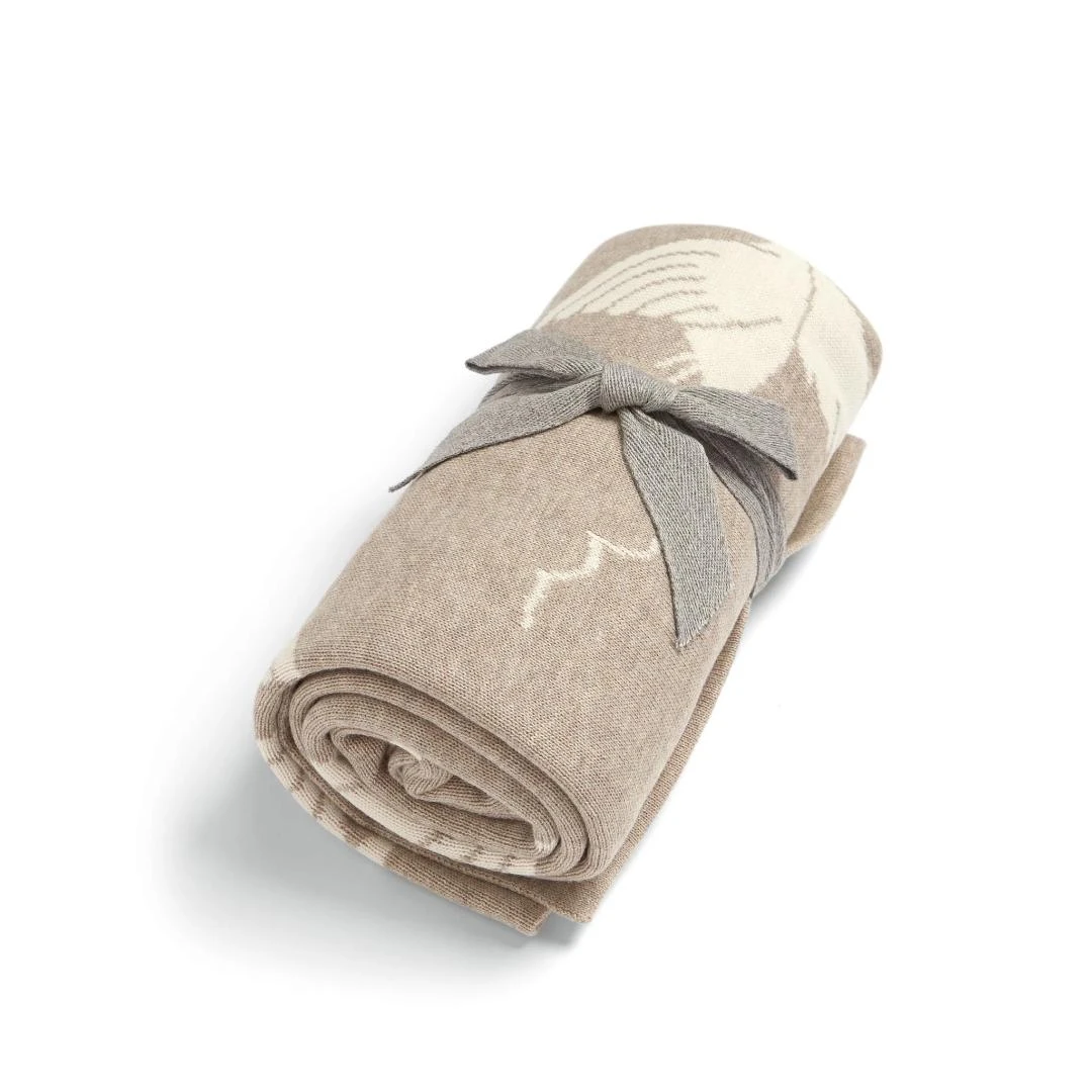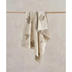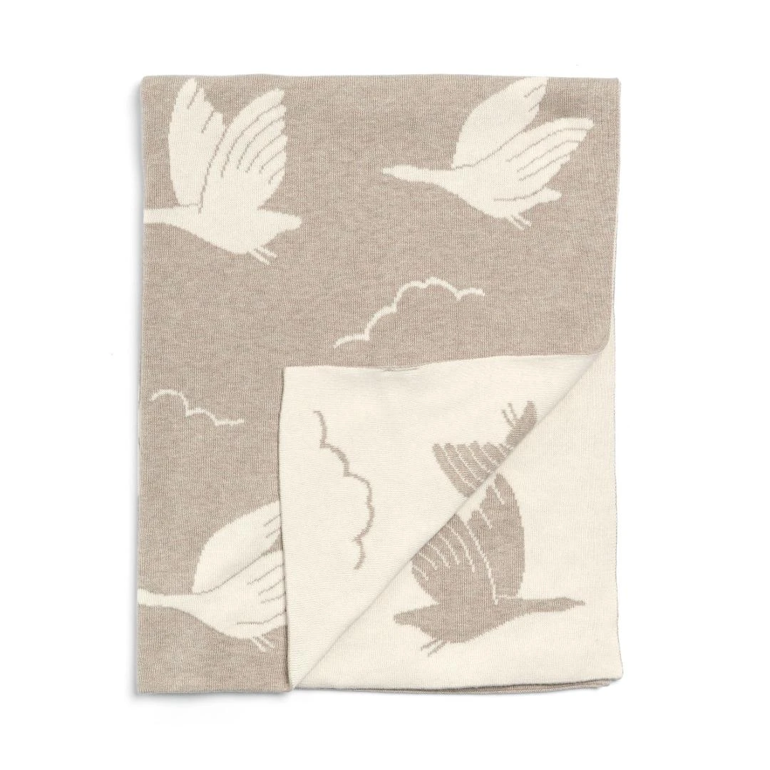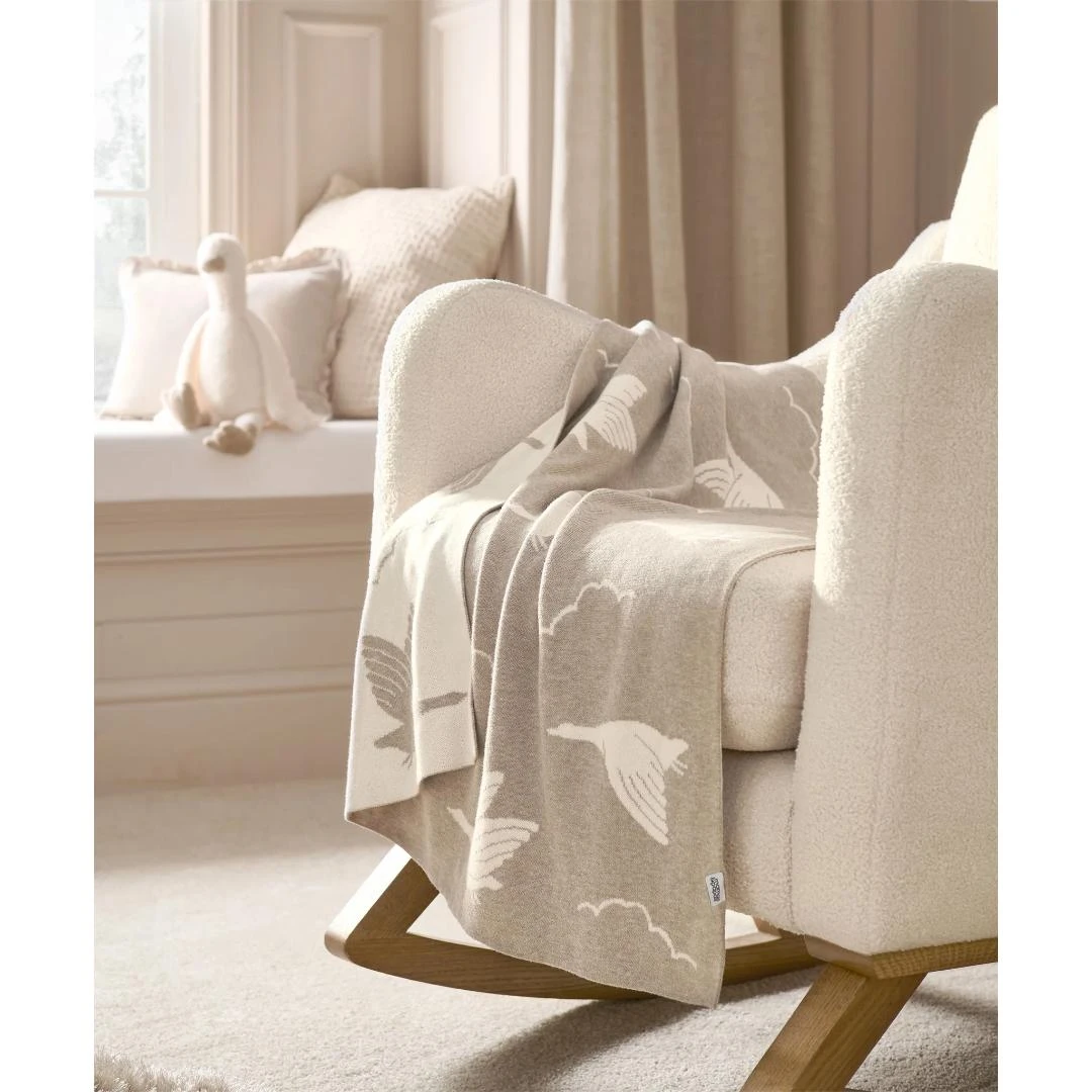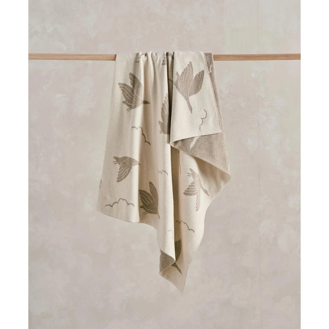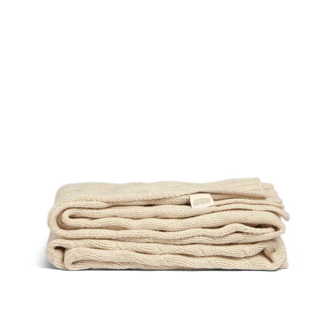 Marled, oatmeal cable knit blanket with detailed knit pattern. Made from soft knitted Cotton.