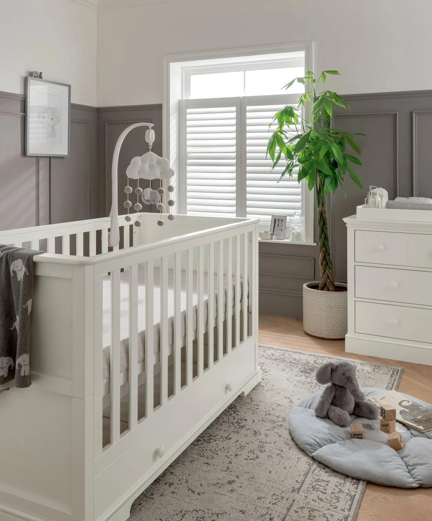 Embrace elegant heritage detailing with our Oxford nursery furniture. Our most substantial collection, the striking cornice and plinth detailing and painted finish command attention while bringing a robust, traditional feel to your room. We’ve crafted each piece to include clever design features to see your little one through their early years.
