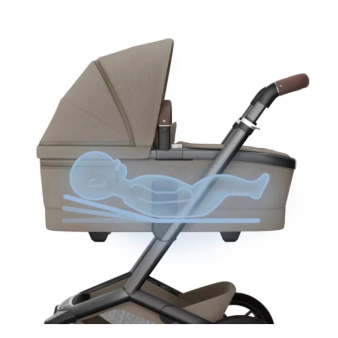 - The carrycot is designed with an integrated SoothingSlope. Simply pull a strap to gently raise your baby into an inclined sleeping position.