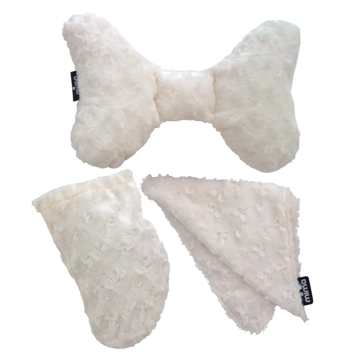 The Mima Travel Kit contains 3 pieces. The first is a pillow in the shape of a butterfly, which is great for kids and big kids alike when travelling. The second is an adjustable, multi-use bandanna and finally the bag to store all your little one’s treasures when kids go out.