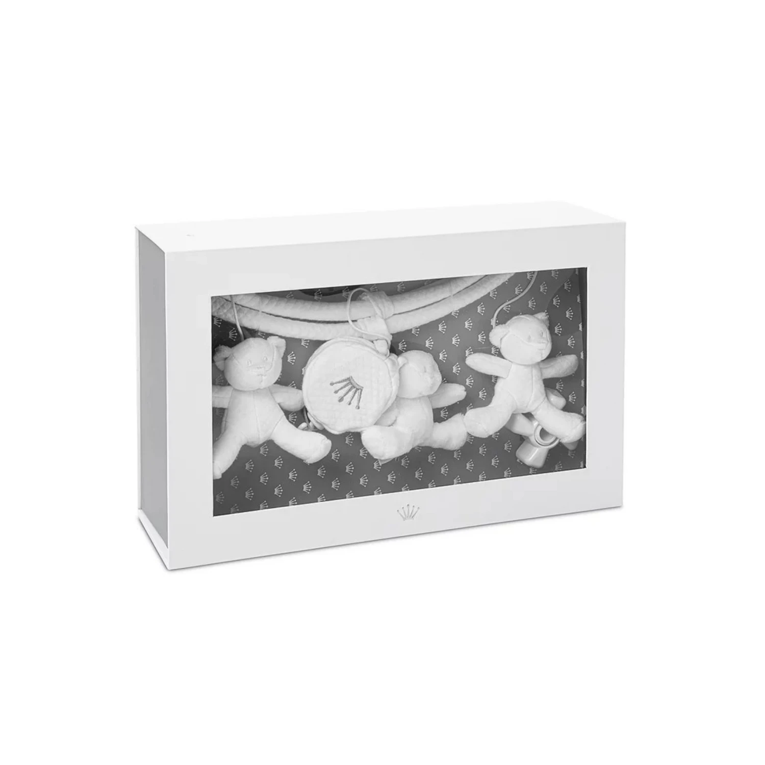 Mobile for cradle or bed white waffled jersey and velvet, the arm is covered in white molleton, packed in a luxury box.