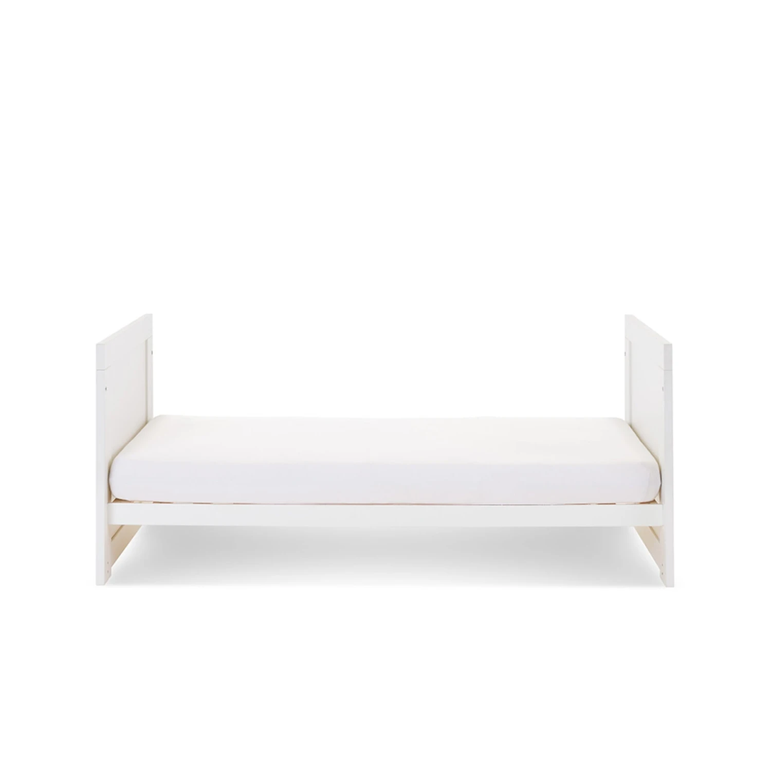 When your little one is standing confidently, the Nika can be easily transformed into a stylish toddler bed that still offers the familiarity they are used to and helps them to transition in an often-daunting time. Once transformed the toddler bed can be used until they are approximately four years old. Requires an Obaby 140 x 70cm mattress.