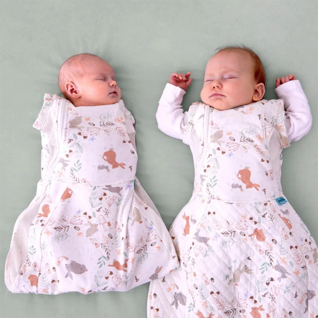 The Purflo Swaddle To Sleep Bag 2.5 TOG in Storybook Nutmeg has been developed to offer parents a safer, healthier bedding solution for newborns and young infants. It features unique breathable panels and the option to swaddle arms in or out. The Swaddle To Sleep Bag grows with new babies with an extended length which is certified hip healthy.