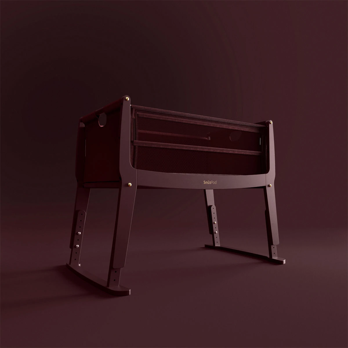 Meet the lifestyle bedside crib Snuzpod Studio in Rome Burgundy made for the modern parent.