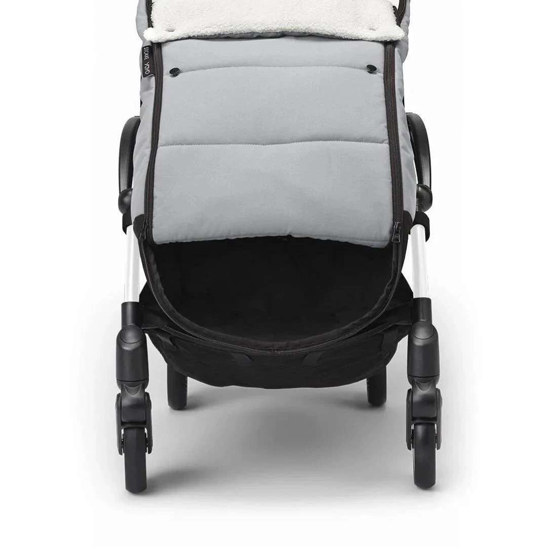 The Stokke YOYO Footmuff in Stone offers optimal protection. In very cold weather, the fleece hood with drawstring keeps your baby warmer. To adapt to all seasons, the hood is reversible and the upper part of the footmuff is fully detachable.