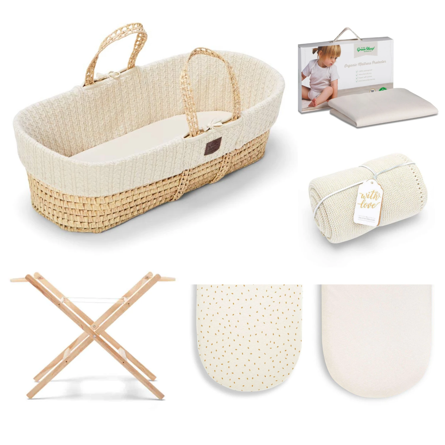 - 1 x Organic Mattress Protector – Moses Basket 30x70cm