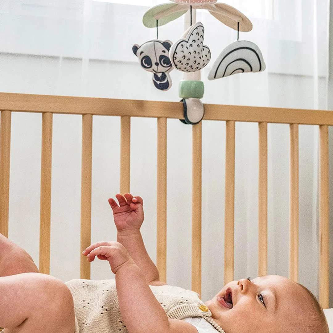 The Tiny Love Take Along Mobile in Black and White offers 30 minutes of continuous music and 5 different melodies, this 3-in-1 Take Along Mobile keeps babies engaged and entertained at home and on-the-go. Comes with 3 easy connectors for attaching to play yards, travel coats, cribs, strollers and more, giving your little one a feeling of home away from home.